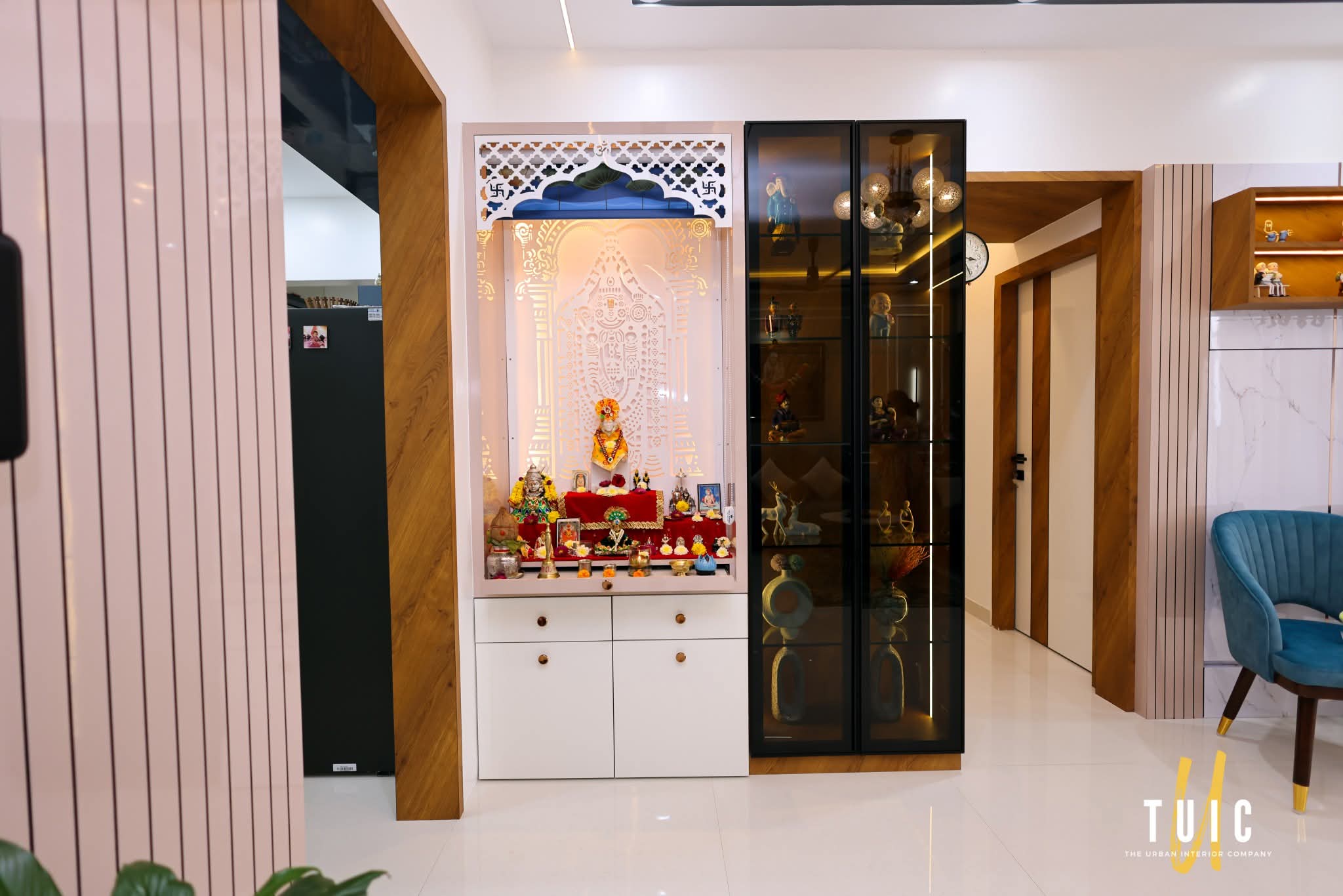 Beautifully designed prayer corners and mandirs that create a serene spiritual ambiance.